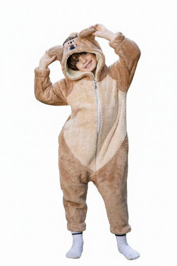 جامبسوت شتوي فرو للأطفال، بتصميم اسد لطيف يجمع بين الدفء والمرح في قطعة واحدة.
