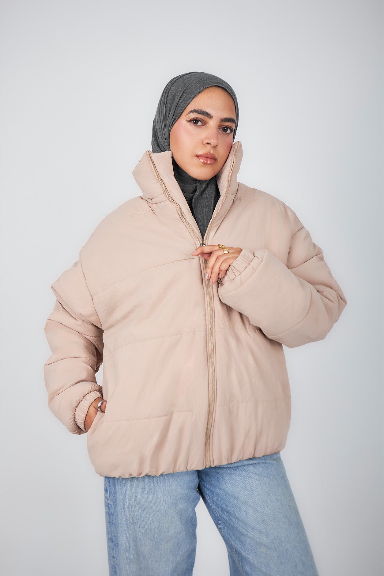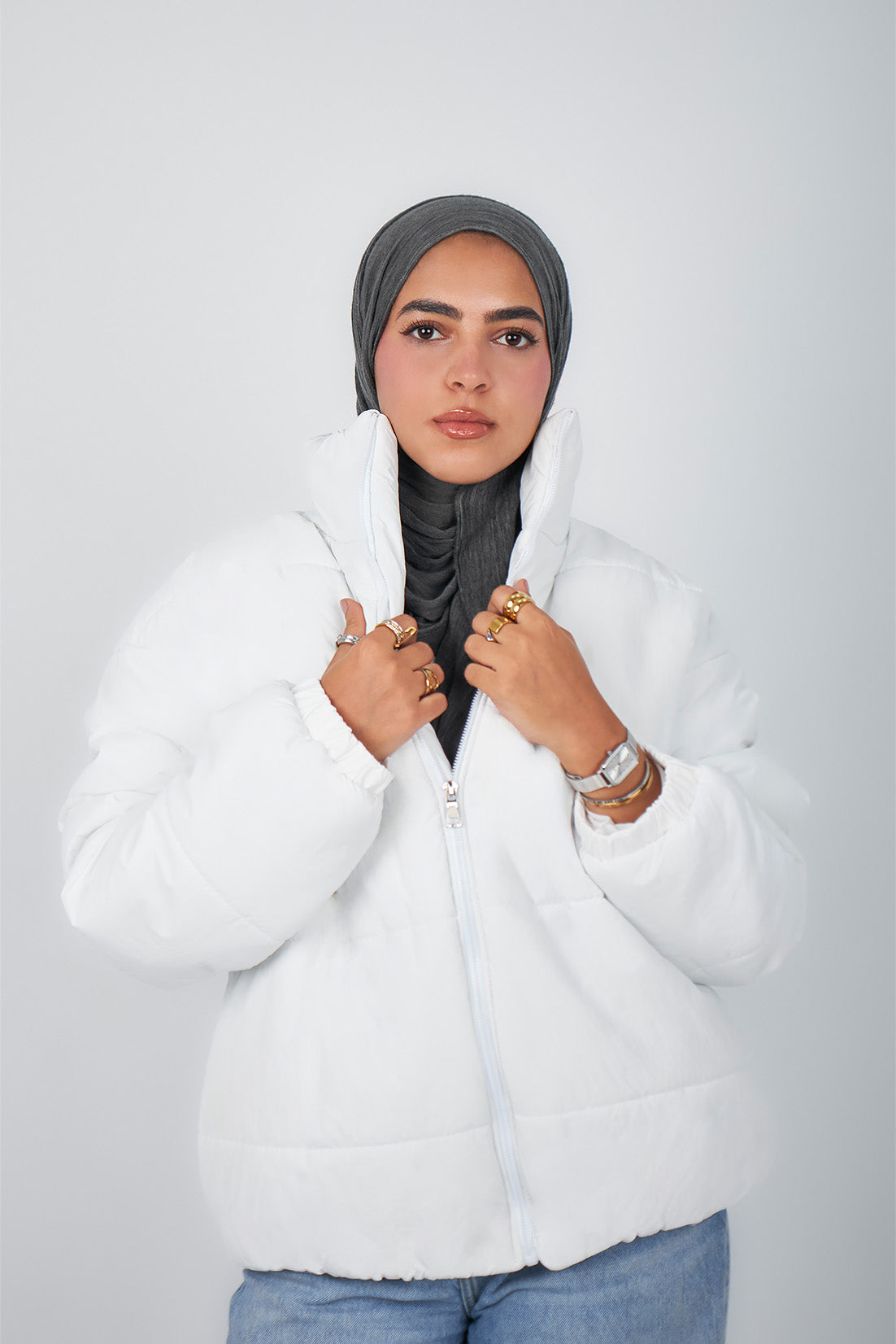 جاكيت نسائي أنيق بتصميم Puffer عصري يجمع بين الدفء، والخفة، والعملية.