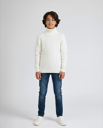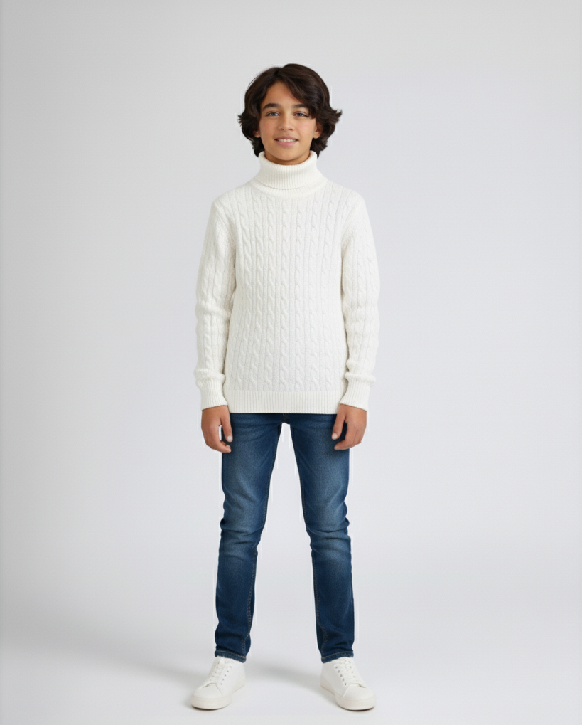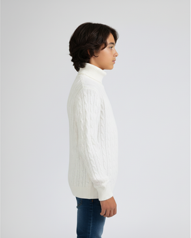 في الأيام الباردة، احمي ابنك ببلوفر هاي كول مصنوع من تريكو بنقشة كابل كلاسيكية.