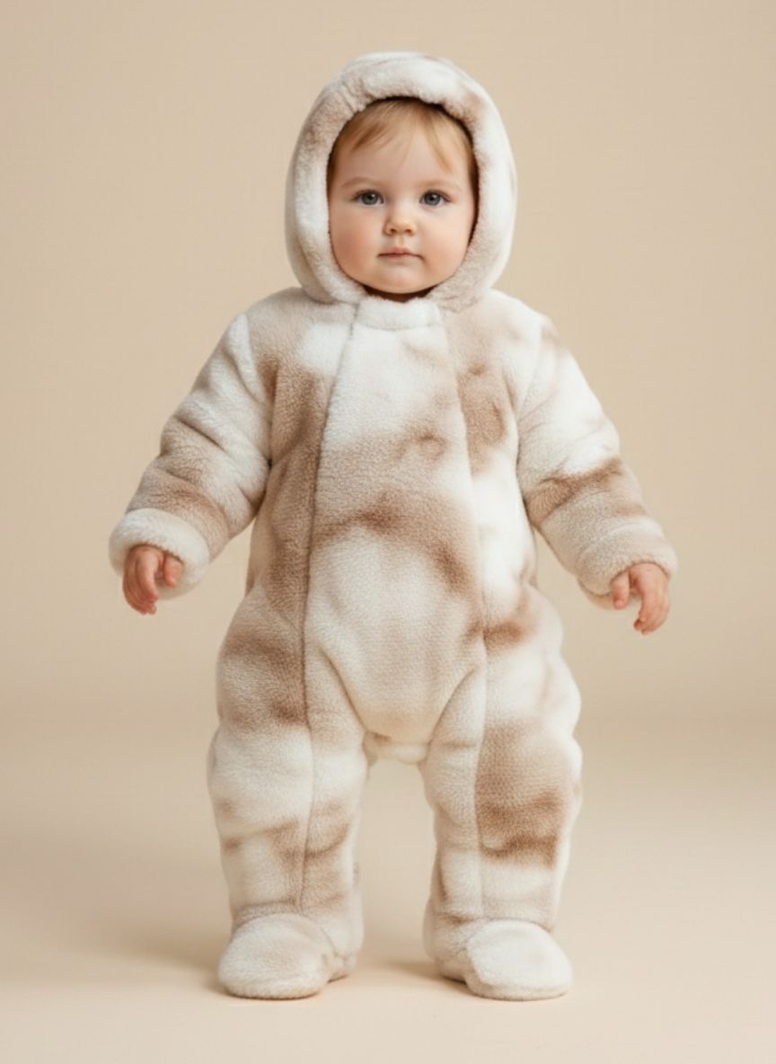 جمبسوت شتوي للأطفال مصنوع من فرو ناعم ودافئ، مصمم ليمنح طفلك الراحة والدفء في الأجواء الباردة. مزود بغطاء رأس للحماية الإضافية و2 سوستة أمامية لسهولة الارتداء والخلع. مثالي للاستخدام اليومي والخروج في فصل الشتاء.