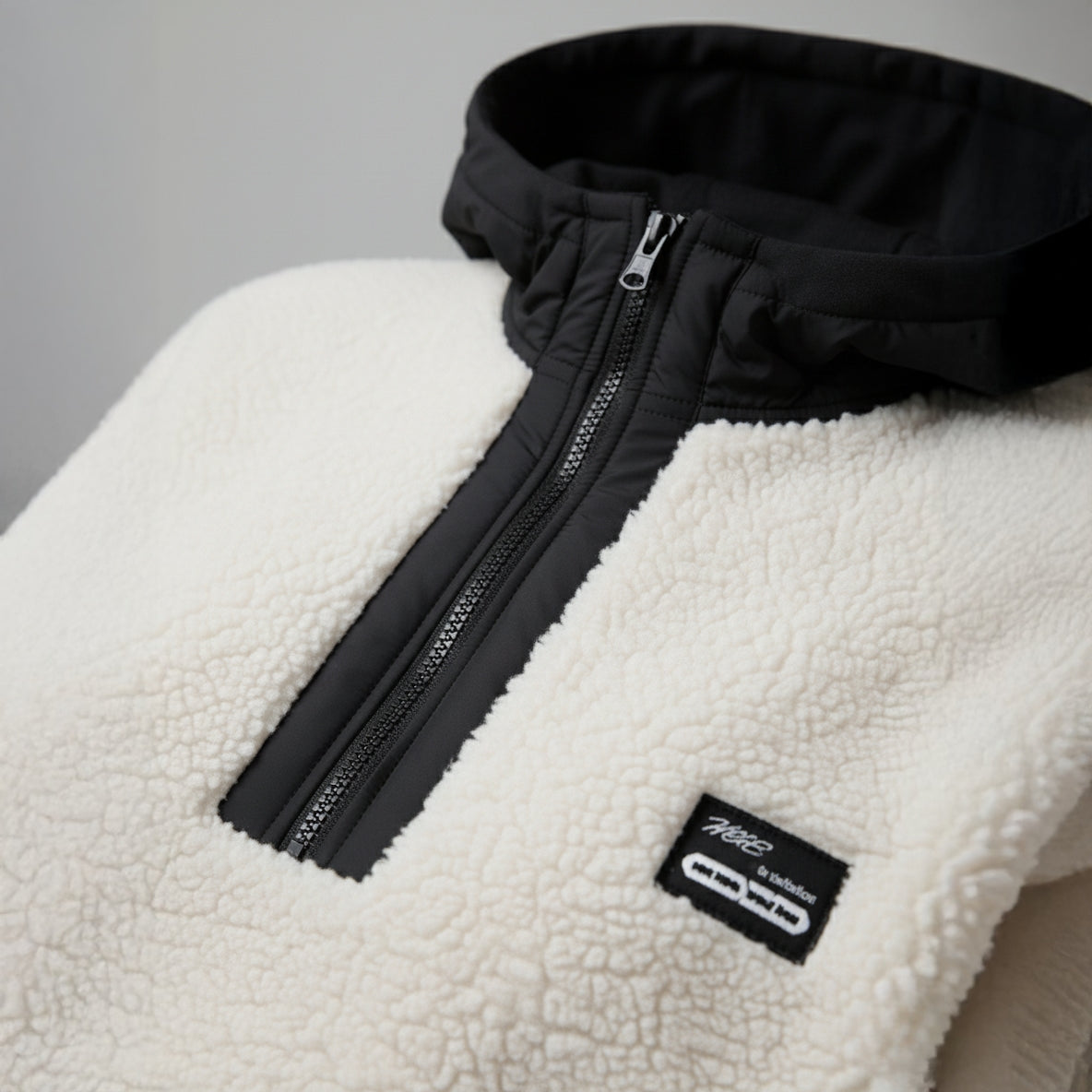 كابيشو من قماش أسود ناعم من الداخل والخارج لتباين لوني مميز وحماية إضافية من البرد.